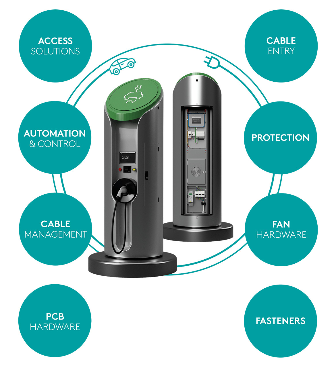 Electric Vehicle charging stations have strict requirements, that can be addressed through the design and manufacturing process. Domestic or commercial charging stations must be user friendly, easy to install and safe to supply higher voltages than are usually found in the home or office environment.