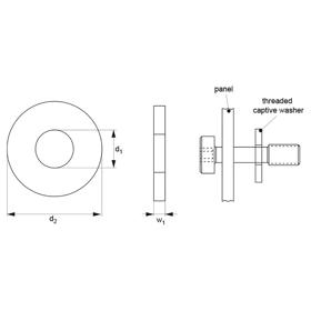 This range of Captive Washers has a very shallow thread on the inside diameter. This means they can be screwed on, and once past the threads they will not separate from the captive screw or bolt.