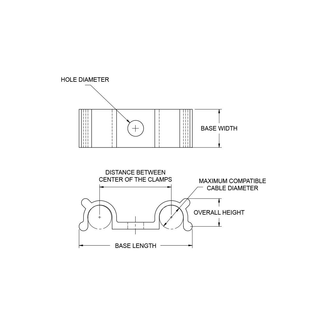 Il profilo ridotto ne consente l'uso su schede stampate ad alta densità o in altri spazi ristretti. Utile per l'instradamento di due fasci di cavi paralleli. Foro al centro da 0.125 per una vite #4 o M3. Disponibile in tre dimensioni diverse per accogliere fasci di 1/8 pollici, 3/16 pollici e 1/4 pollici. Nylon UL94 V-2 6/6, colore naturale